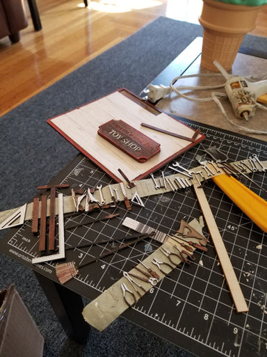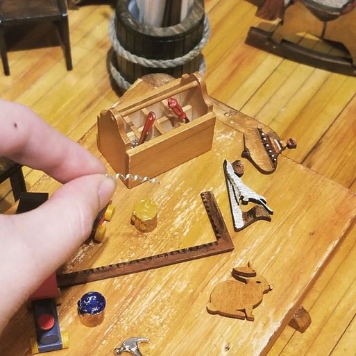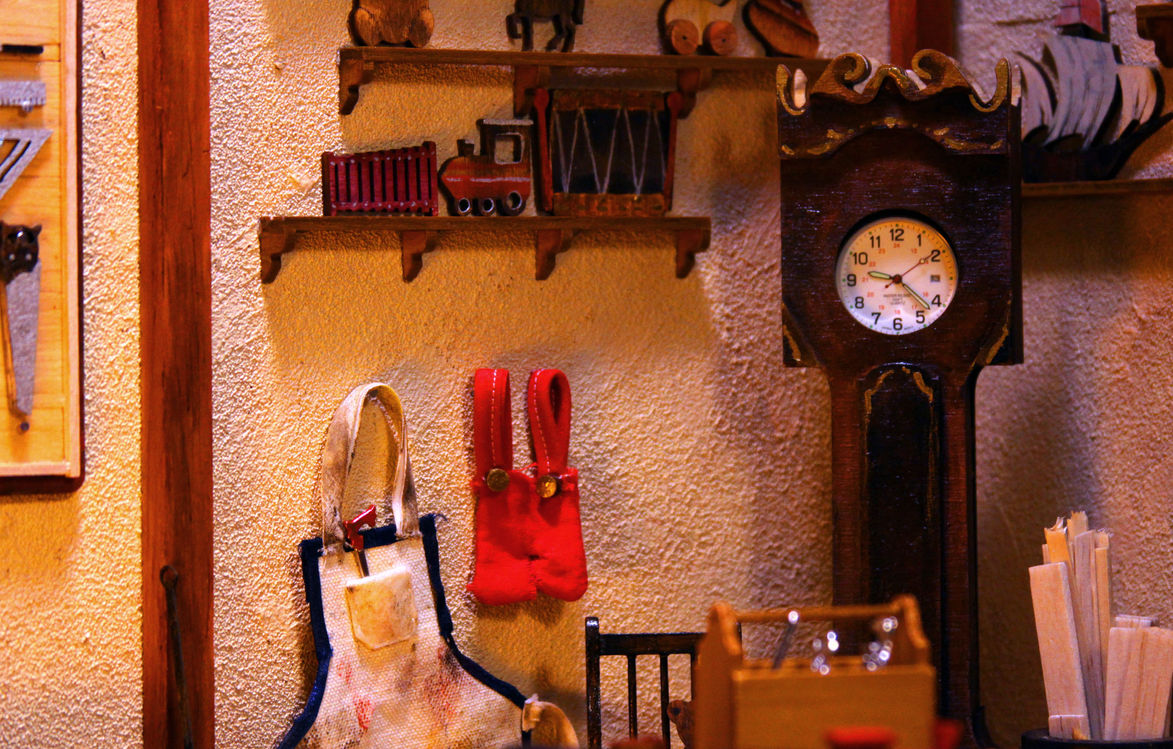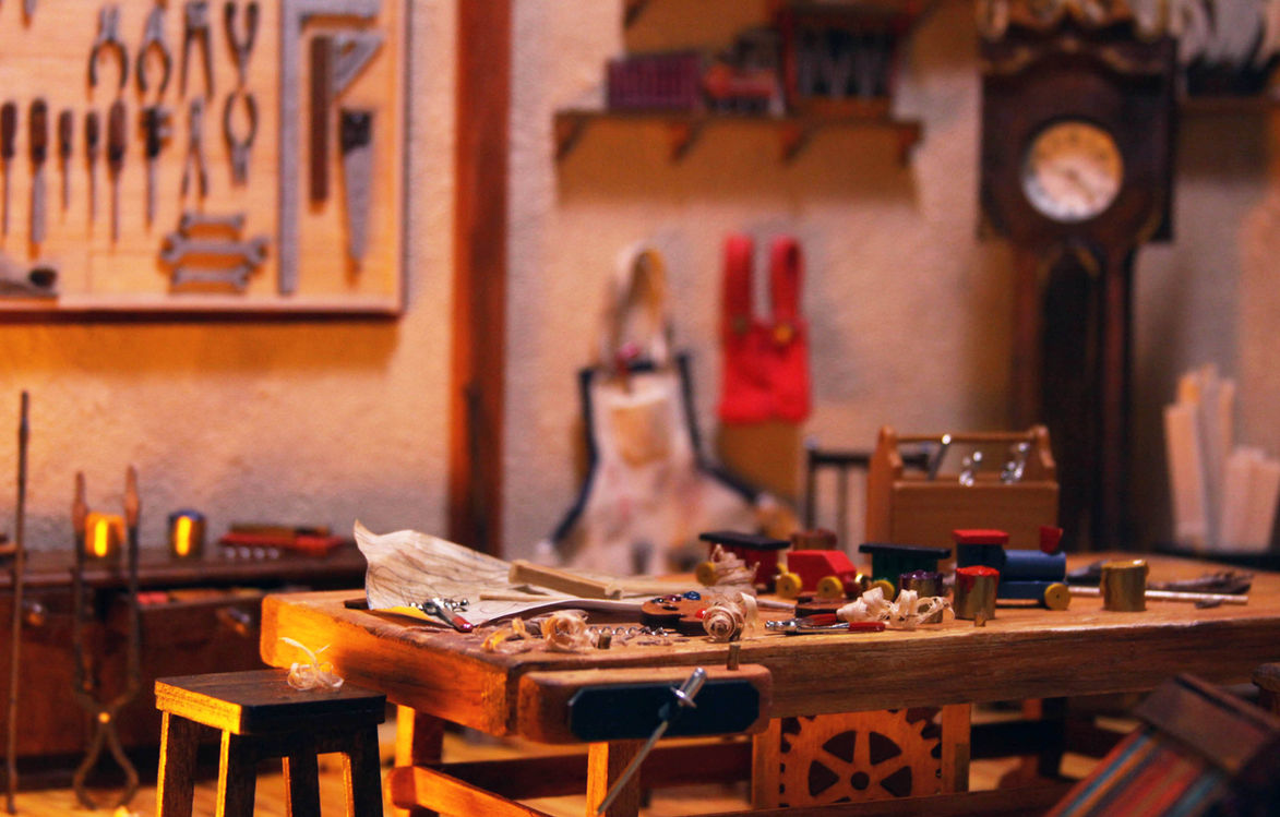 A handmade miniature set to capture the moment before Pinocchio was created.